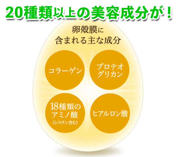 実は、卵殻膜には1つでも美容液にされるほどの美容成分がたっぷりと含まれているんです!